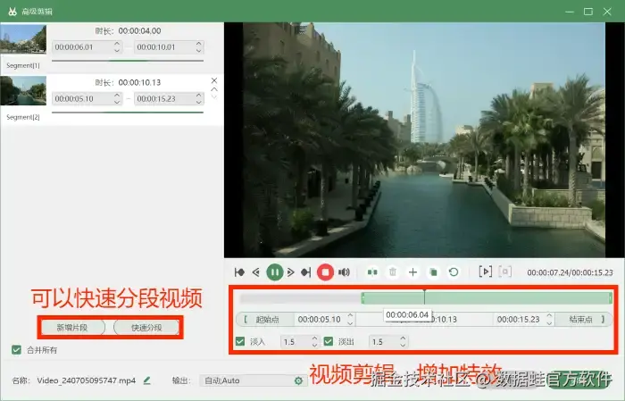 步骤4: 录制完成后,可以在软件中进行预览和后期处理 (如快速分段,增加特效等) ,然后可以选择设置输出的帧率 (如12fps、15fps等) ,最后导出你的视频文件。