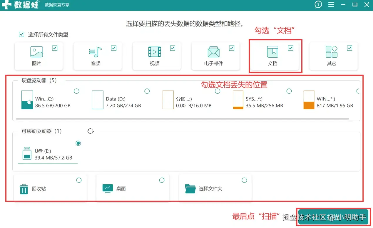 word文件丢失怎么找回?通过数据 蛙恢复专家找回Word文档的步骤如下: