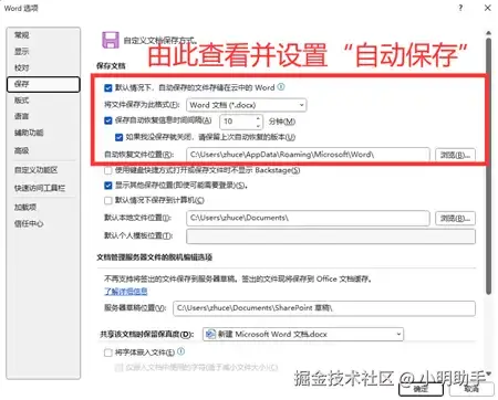 Word文档恢复妙招二:查看Word文档自动保存的文件夹