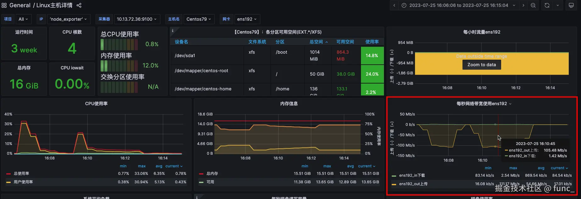压测机:72.36, 以下是发压节点的网络流量情况: