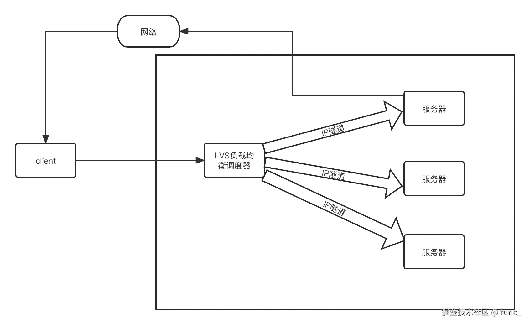 | 特性 | LVS-TUN 模式 | LVS-DR 模式 |