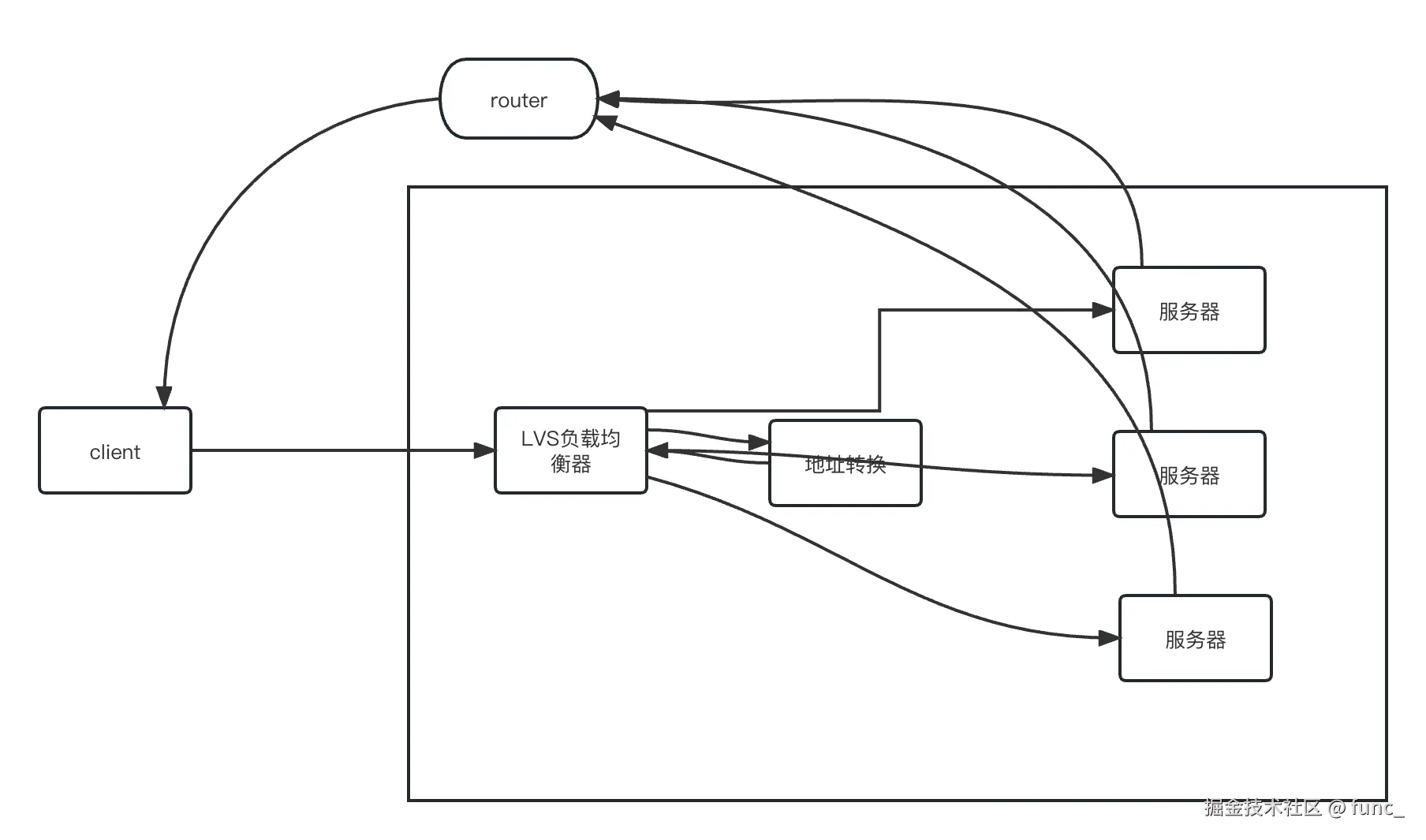 所有流量都会经过nginx所在的服务器,导致nginx成为流量吞吐的瓶颈,无法满足我们的需求。