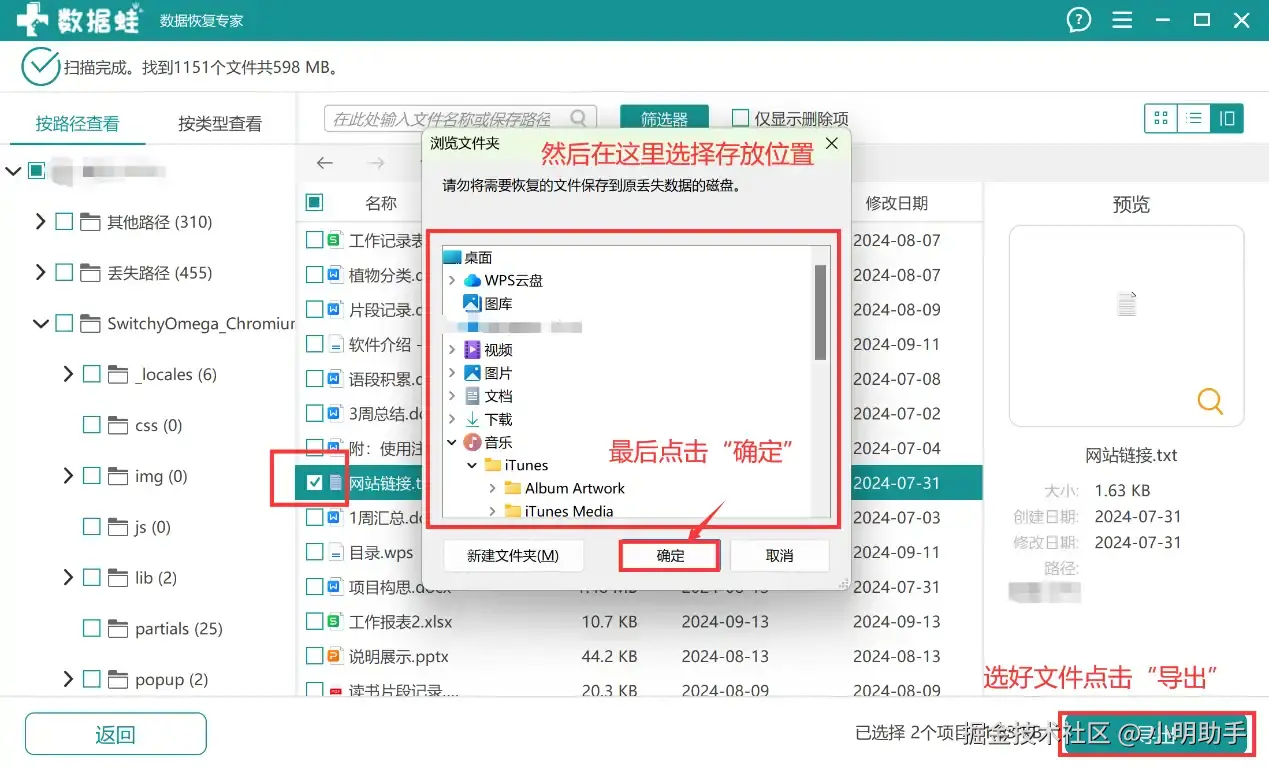 第3步: 找到目标文件后点击“导出”,然后在弹窗上选好存放的位置即可。