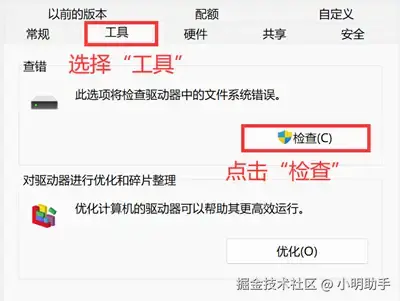 确保U盘和电脑正常连接后,在“此电脑”中单击目标U盘,按下鼠标右键后点击“属性” ,在选项卡上选择“工具” ,在查错页面点击“检查” 即可。