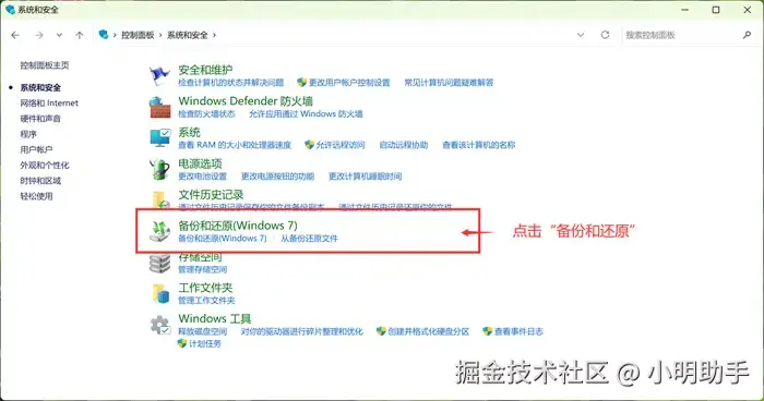 在电脑的菜单里找到 “控制面板” ,然后点击“备份与还原” 的功能;在选项卡上点击“还原我的文件” ,然后再选择需要恢复的文件备份文件夹,为其选择新存储的位置即可。