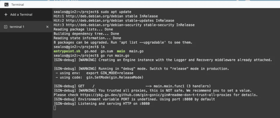 我这里创建了一个自带 golang gin 框架的 Devbox: