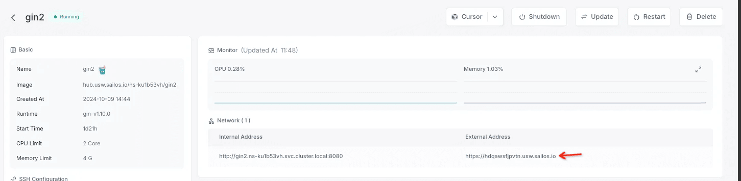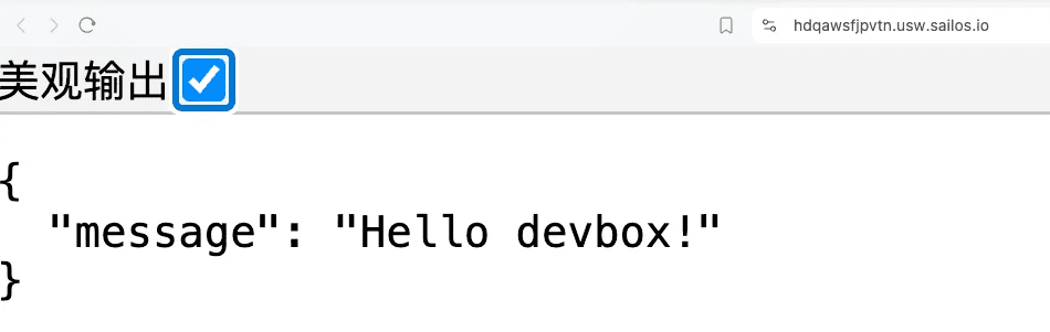 我这起了一个 gin 的 http server,通过 Devbox 提供的域名就可以直接访问: