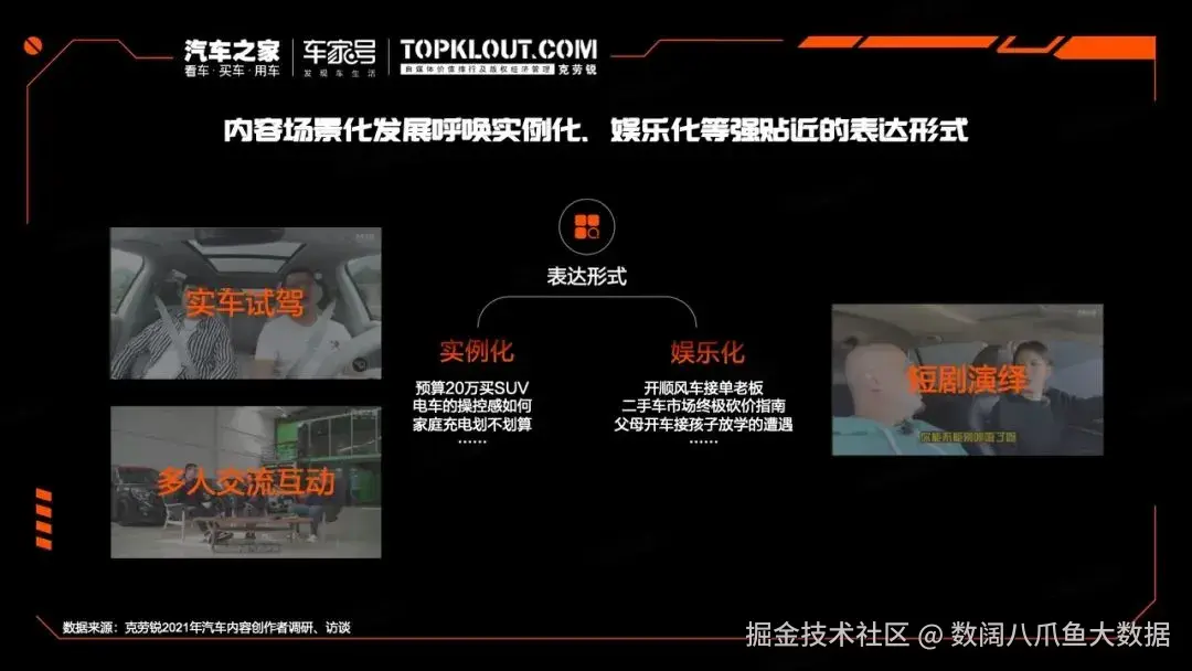 很多汽车消费者在购买新车时会选择去汽车之家、懂车帝等垂直汽车平台搜索相关车型的信息,在社交媒体上讨论自己喜爱的汽车品牌,在短视频平台上观看展示汽车的视频,用户购车甚至可能只是因为在抖音上看到了一个酷炫的短视频。