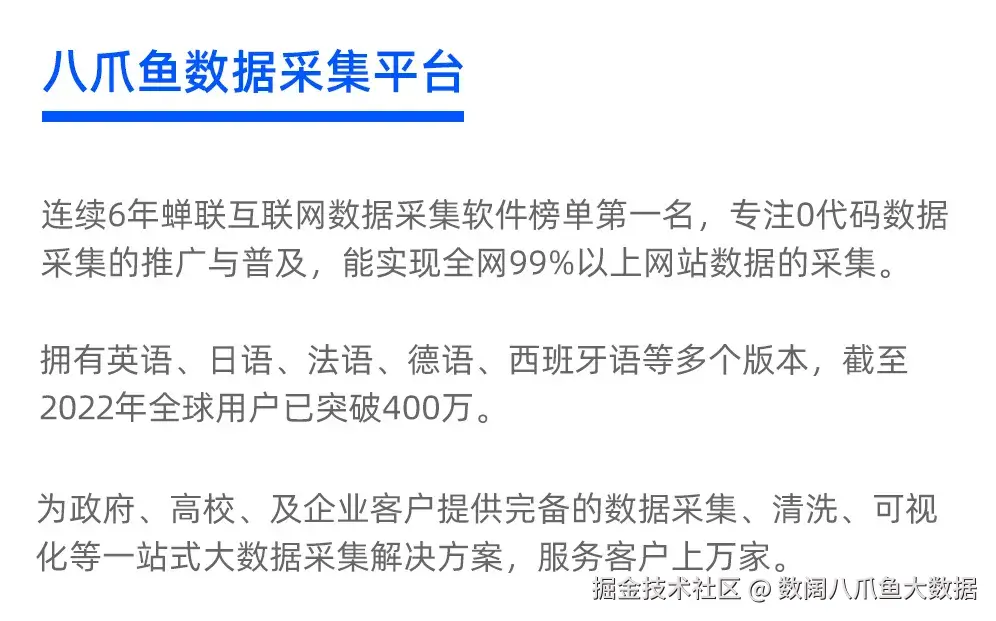 八爪鱼拥有多年的数据采集和算法模型能力沉淀,以及经验丰富的VoC平台开发团队,帮助多个汽车领域的客户搭建了VoC平台。基于扎实的数据实力和算法能力,八爪鱼可实时采集汽车平台数据,通过对汽车数据的挖掘与分析,剖析用户的基础属性、行为偏好等,助力汽车品牌进行用户洞察/用户画像分析/产品优化等,智能分析客户意见,促进品牌的增长。