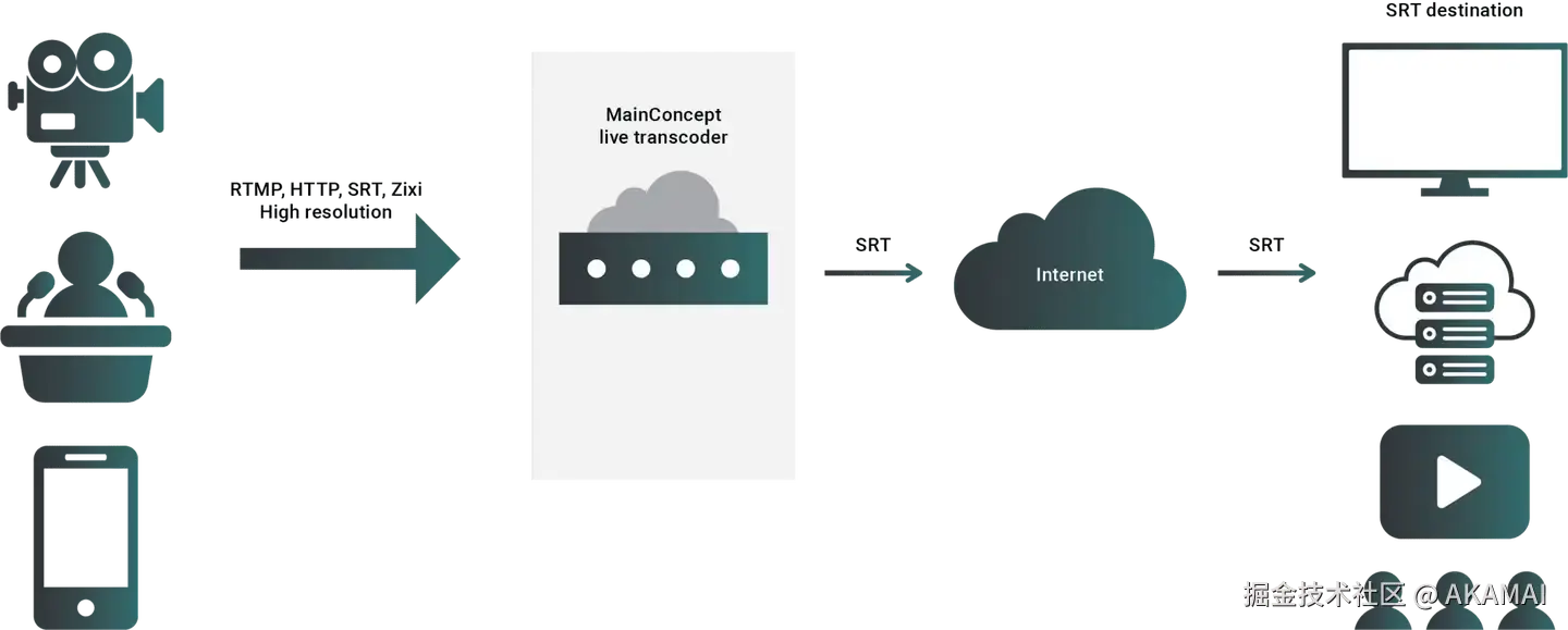MainConcept Live Encoder是一款简单易用的应用程序,可使用AVC、HEVC、VVC和LCEVC编码分辨率高达8K的媒体,并可用于广播和OTT传输。用户既可以通过PUSH将直播流直接推送到Akamai的Media Services Live 4 Live Origin服务,也可以结合Akamai的Cloud Wrapper这款源站分流产品(origin shielding product),以非常高效的方式让Akamai直接拉取直播流。