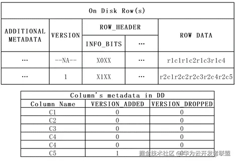 元数据version实现涉及表元数据、列元数据、行格式三部分的修改。