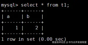 INSERT INTO t1 VALUES(1, 2); -- 数据一