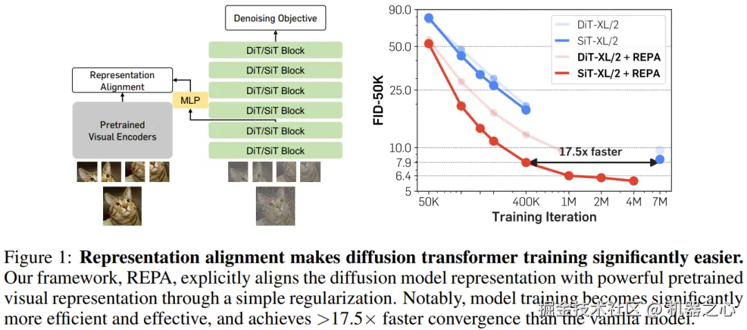 REPresentation Alignment(REPA),即表征对齐技术,便基于此而诞生了。这是一个基于近期的扩散 Transformer(DiT)架构的简单正则化技术。