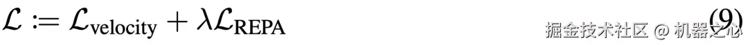 在实践中,是基于一个系数 λ 将该项添加到基于扩散的原始目标中。例如,对于速度模型的训练,其目标变为: