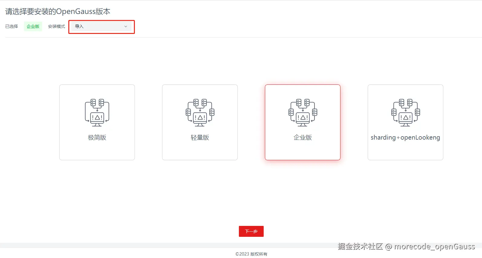 选择安装模式为【导入】,并且选择企业版,点击【下一步】