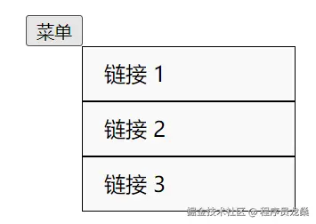 在一些网站我们经常会遇到这种菜单,尤其是顶部导航栏上,很容易发生一种尴尬的场景:鼠标从按钮移动到菜单的过程中不小心超出了按钮和菜单的范围,菜单消失了,用户又要重新执行该操作。 假如我们采用如下方式控制菜单弹窗展示: