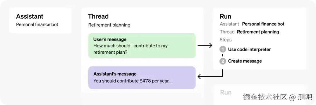 由 GPT-4 等大型语言模型提供支持,能够为用户执行任务。这些助手根据模型上下文窗口中嵌入的指令进行操作。他们通常还可以使用允许助理执行更复杂任务的工具,例如运行代码或从文件中检索信息