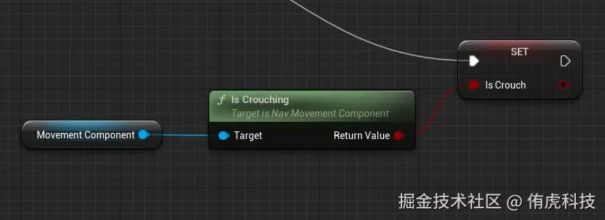 在EventGraph中获取Crouch的状态,用来控制动作的触发: