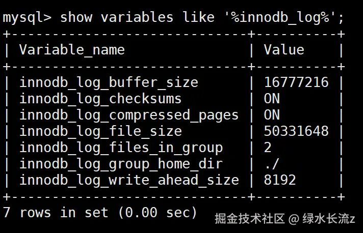 innodb_log_buffer_size:Redo Buffer的大小,默认16Minnodb_log_file_size:单个Redo Log事务日志文件的最大大小,默认48Minnodb_log_files_group:Redo Log日志文件的个数,默认2个innodb_log_group_home_dir:Redo Log的存放路径;默认值为./代表当前MySQL的数据目录(Linux默认是/var/lib/mysql)innodb_log_checksums:启用或禁用Relo log数据页的校验,默认开启。innodb_log_compressed_pages:指定是否将重新压缩的页写入Redo Log,默认是开启状态