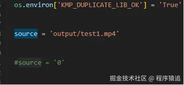 在main.py文件中找到source并添加所需推理的视频路径,如果需要使用本机的摄像头则将sourced设置为0,最后命令行运行下列代码