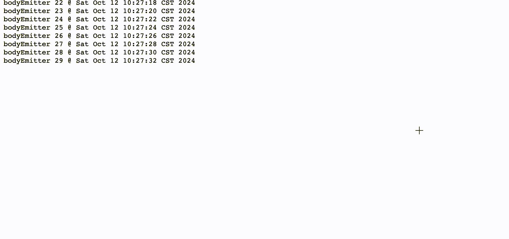 emitter.send("bodyEmitter " + i + " @ " + new Date() + "\n");
