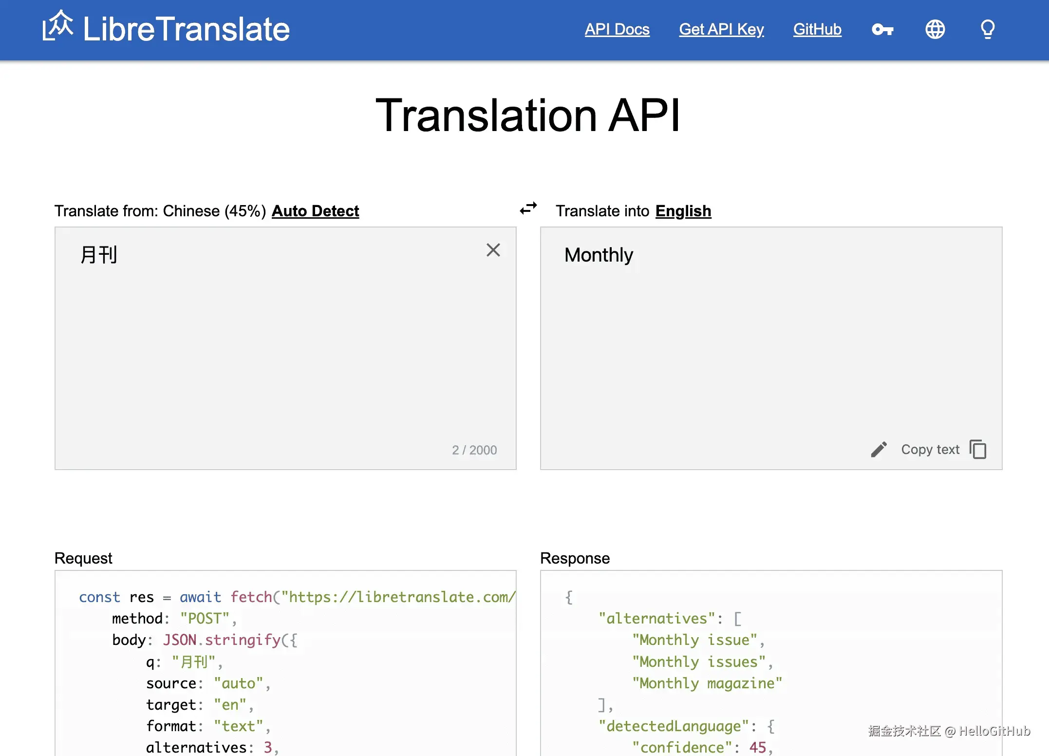 - 2.2 可离线部署的翻译 API 服务:LibreTranslate