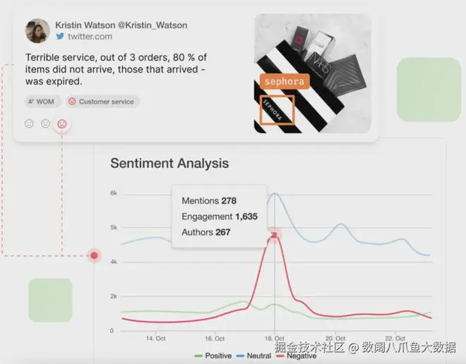 它还包括情绪分析——用户不仅可以查看对品牌的讨论情况,还可以看到这些信息是积极的、消极的还是中性的。