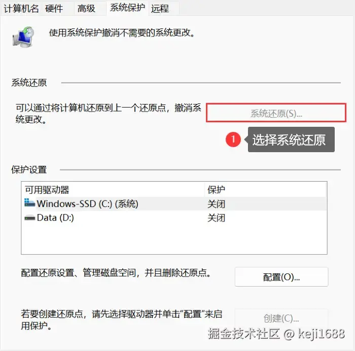 如果以上方法都没有解决问题,怎么恢复电脑原来的桌面显示?在搜索框中输入【创建还原点】,然后选择【系统还原】。点击【下一步】,选择你想要还原到的系统还原点。