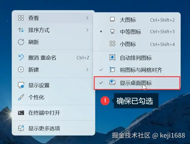 方法一:检查桌面图标设置