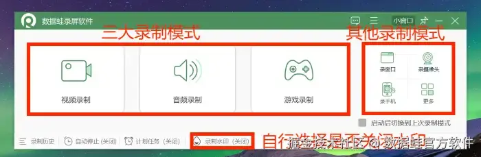 步骤2: 打开软件后,你可以根据自由选择录制的模式,按照需求选择就可以了。本篇文章以 “视频录制” 模式为例。