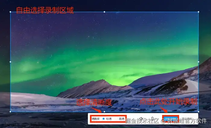 步骤2: 在录屏界面中,自由选择需要录制的屏幕区域。你可以拖动鼠标来框选区域,或者选择全屏录制。