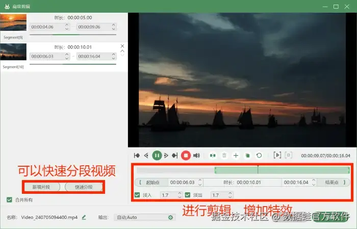 步骤4: 录制完成后,就可以在软件中预览视频并且进行编辑了,如剪辑、添加水印、快速分段等。然后一个完美的屏幕录制视频就可以呈现你的眼前啦。