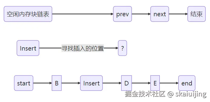 InsertFreeBlock不仅实现插入,同时实现合并内存块