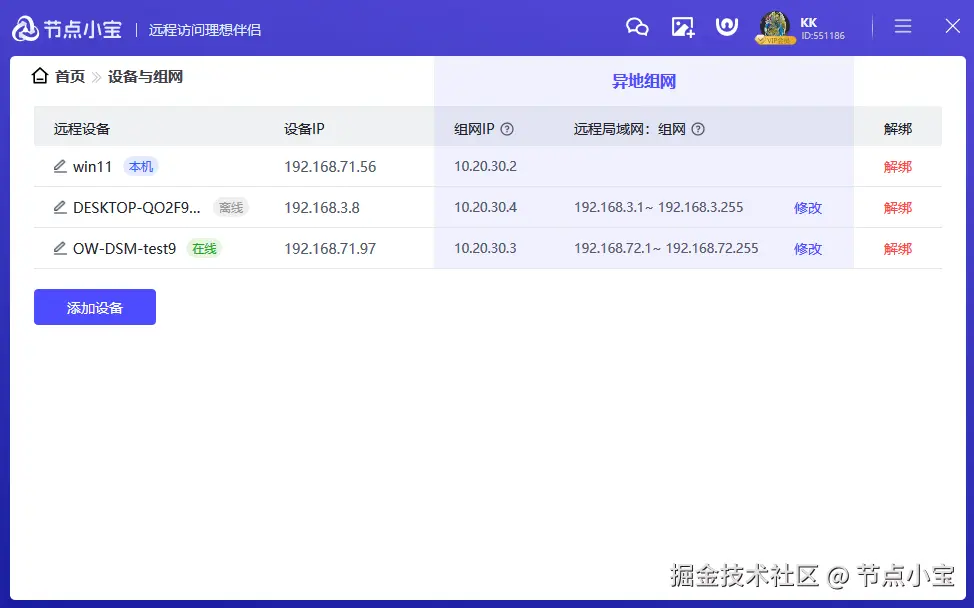 点对点组网:为你绑定的所有设备分配虚拟IP,通过虚拟IP即可访问设备