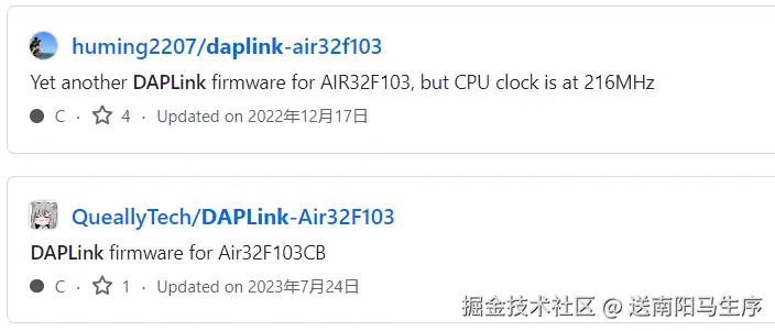 - 1)DAPLink 源码可以到 github 上搜索 “DAPLINK air32”: