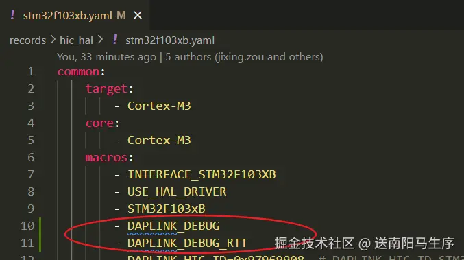 (2)那么我们在 /records/hic_hal/stm32f103xb.yaml 文件中添加 DAPLINK_DEBUG 和 DAPLINK_DEBUG_RTT 两个宏定义。