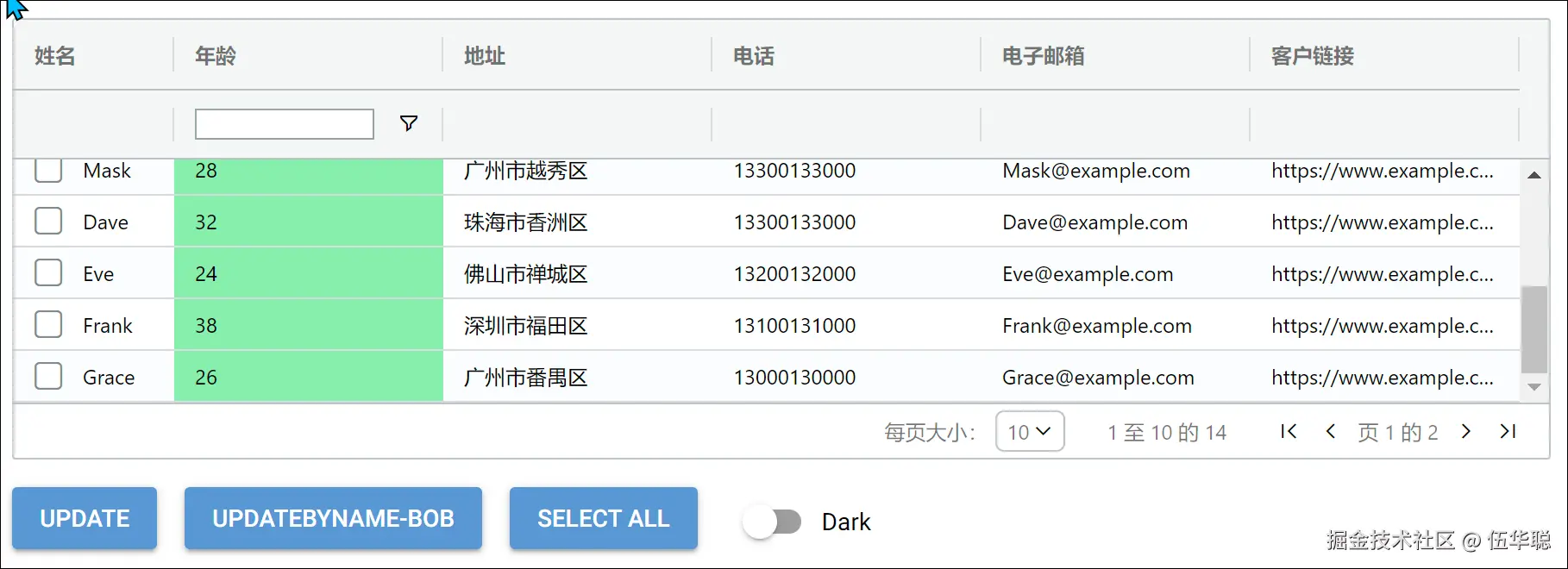 另外,nicegui还集成了另一款表格组件aggrid,它的官网地址 : www.ag-grid.com/,效果也是非常不错。