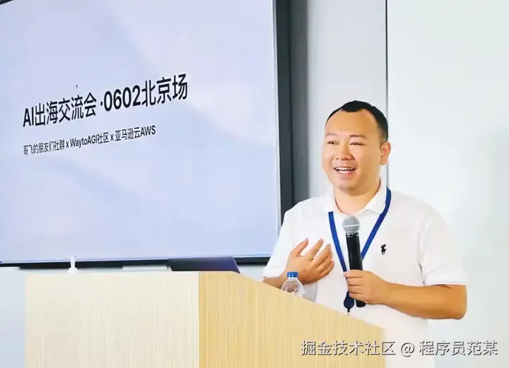 大家好,可以叫我哥飞。也有人叫我飞哥,因为飞哥太普通了,但是哥飞就不一样,至少你在各个地方都还能注册到ID。我是技术出身的,创过几次业,目前正在进行一次最新的创业,从去年的7月份开始,我在做一个出海相关的社群,目前社群里边已经有2000多位付费的成员了,同时也在做出海相关的AI产品的开发,我们自己也会开发产品,现在在深圳有一个十个人的小团队。