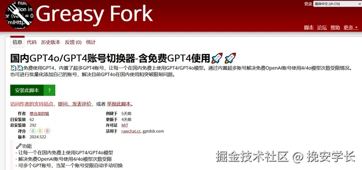 脚本地址:国内GPT4o/GPT4账号切换器-含免费GPT4使用🚀🚀