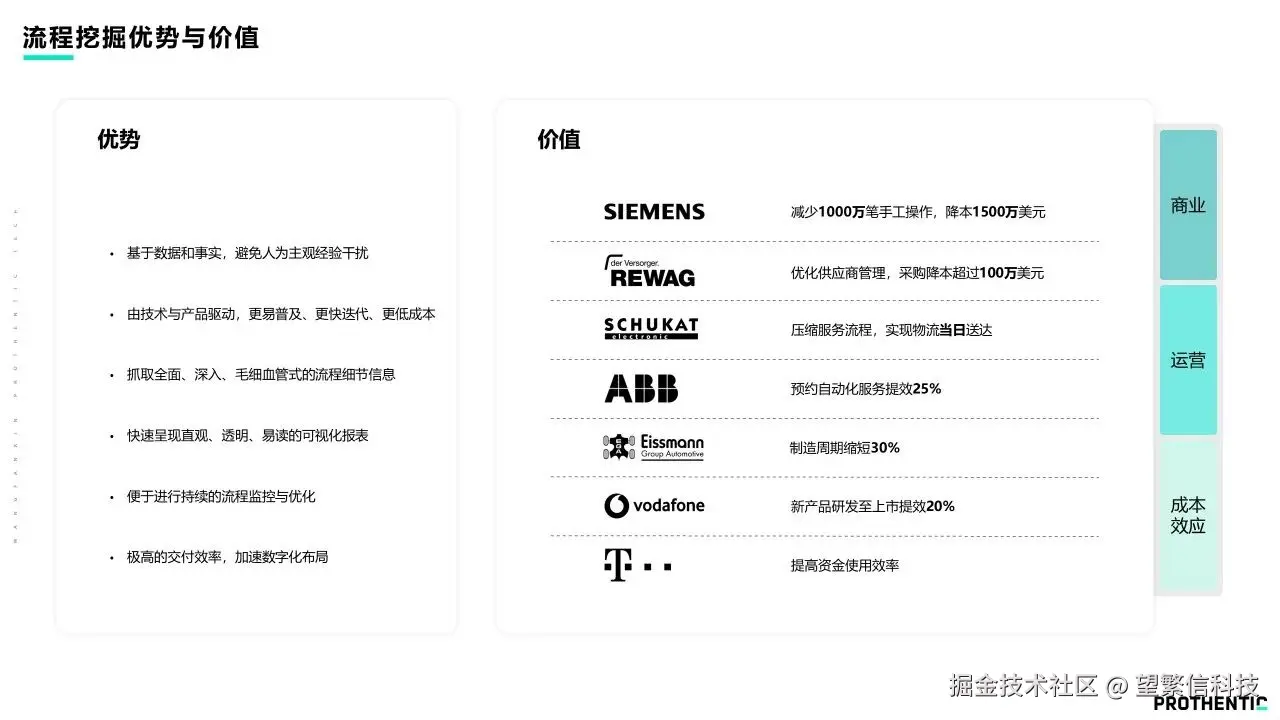 流程挖掘已经在全球范围内取得了令人瞩目的应用战绩,不仅能够帮助企业降低成本,更令人惊喜的是,基于流程挖掘进行流程优化、流程重塑,可以直接提升企业生产力,实现业务增长。比如注重客户体验的物流企业、其送达时间大大缩短,需要产品矩阵创新实现增长的科技型企业、新品上市周期大大缩短。