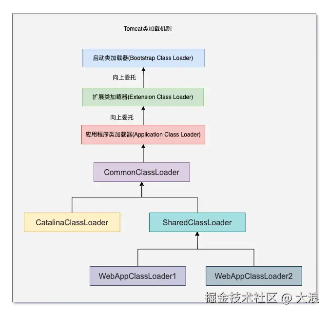 WebAppClassLoader:各个Web应用私有的类加载器,加载类只对当前Web应用可见。