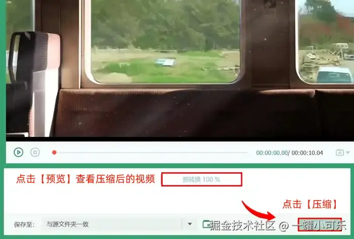 步骤4:完成视频大小的参数调节之后,点击【预览】查看压缩后的视频,确认无误后,点击【压缩】即可。