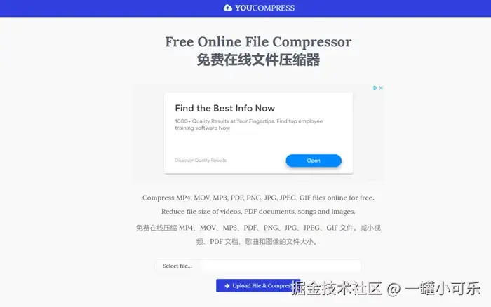 如何压缩视频大小?You Compress是在线文件压缩工具,可以免费压缩视频大小并支持多种格式的视频压缩,但其十分依赖网络状况,如果网络状况不良,可能会导致视频的压缩速度变慢或压缩失败等情况。