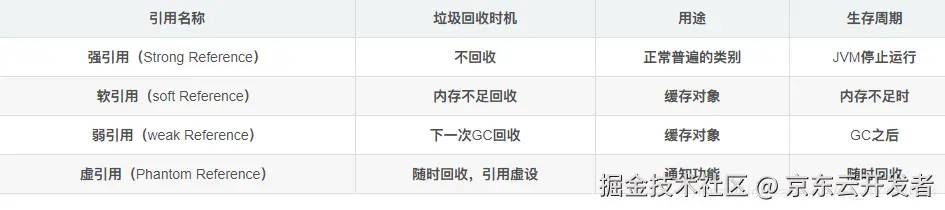 java对象引用汇总表: