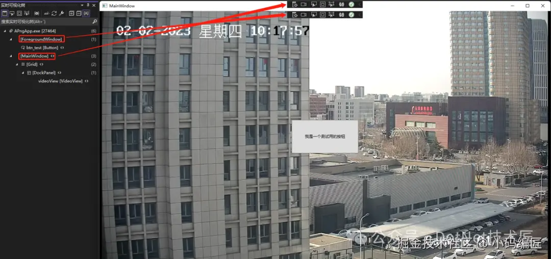 由于VideoView控件的实现原理是在window上面绑定一个前台窗体(ForegroudWindow),然后在ForegroudWindow中播放视频,所以当需要在window中添加其他控件(如:label,button......)的时候不可以使用WPF原始的“并列”写法,而需要使用“层级”写法,即将需要展示的控件写在VideoView控件的"里面",他们形成父子级关系。