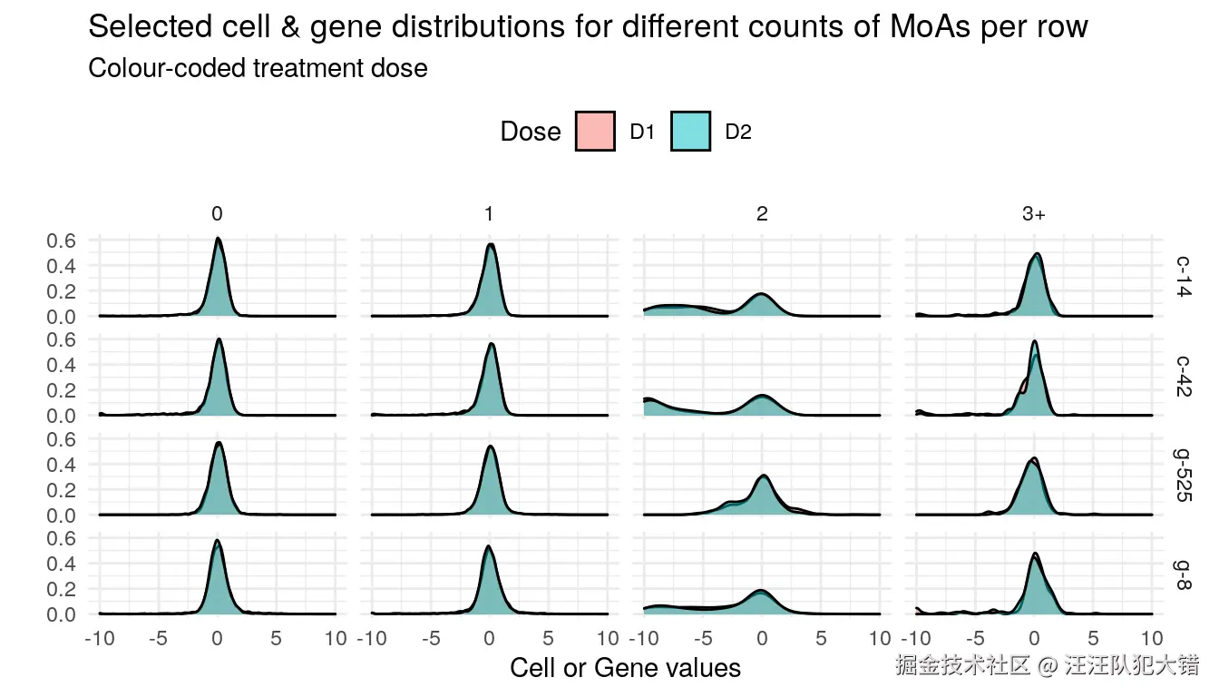 - 密度分布在每种药物训练6行时达到峰值。还有一些明显的峰值在1以上,超过10,还有一些超过100。