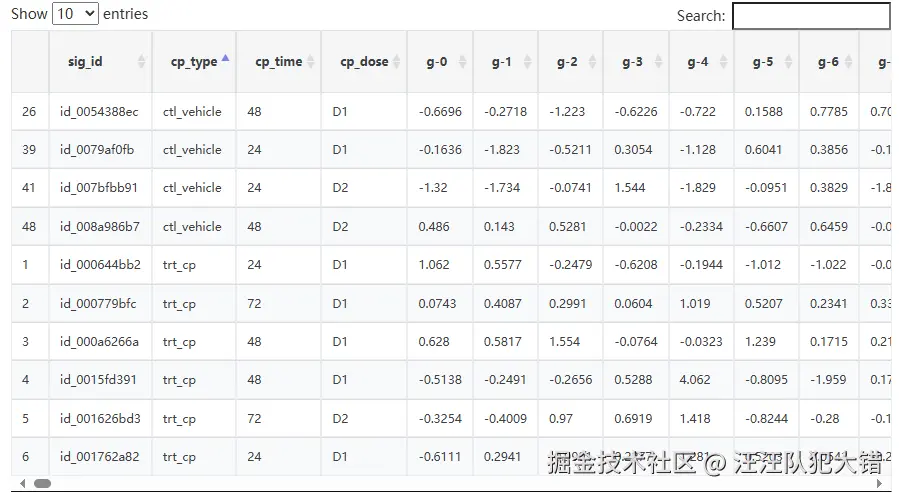 - 这是一个相当广泛的数据集,几乎有900列。从数据描述中,我们知道以“g-”开头的特征编码基因表达数据(有772个),以“c-”开头的特征(共100个)显示细胞活力数据。