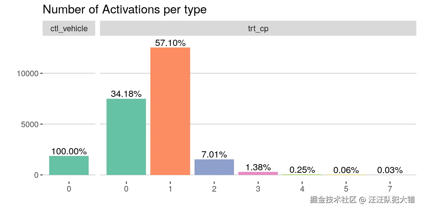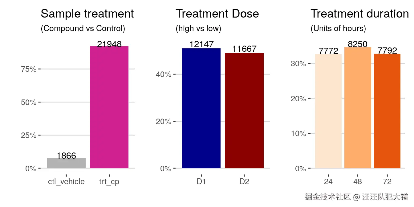 - 此外,我们有3个“cp_”特征:cp_type表示样本处理,而cp_time和cp_dose表示处理的持续时间和剂量。