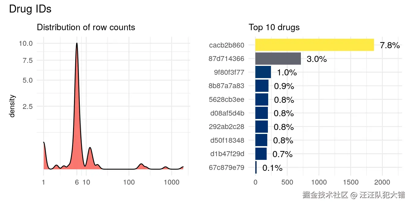 通过这个额外的分析,我结束了我的探索性数据分析。当然,人们可以用新的drug_id数据集做更多的事情,但在这里我只做一个概述。