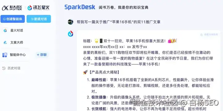 推荐理由: 目前免费,生成的内容更加准确,在这一块,与抖音的豆包不相上下,白杨SEO常用的AI生成文章工具,使用如图。